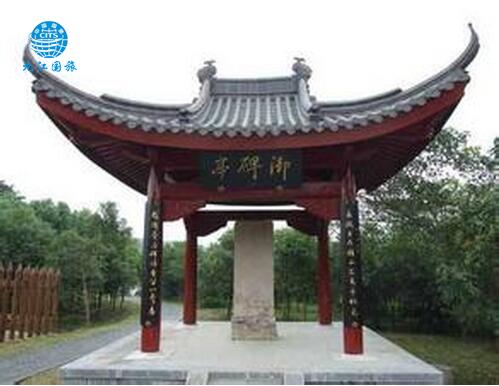 御碑亭高6 米,四面无柱,全是条形巨石砌成,是明朝开国皇帝朱元璋,于明洪武26 年(公元1393 年)所建。朱元璋建御碑亭,既是为了感谢、纪念对明朝建立有功的周颠,也是为了宣扬“君权神授”的思想。