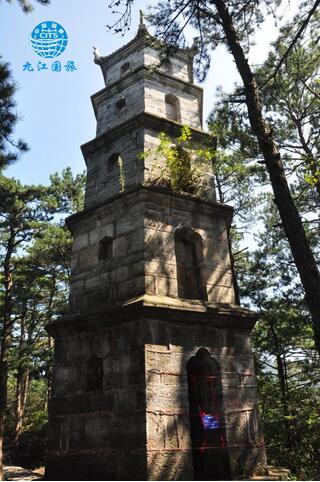 传为宋丞相韩侘胄所建,1929 年国民革命一路军总司令唐生智来庐山,见该塔已颓,发起重修。挖掘塔基地宫时,发现佛教文物多件。有银质全身卧如来1 尊,长9 寸,重约1 斤;银质长扁箱1 口,2 斤多重,尺余长;水晶小佛像1 尊,5 寸长;水晶珠大小各1 颗;小银瓶1 个,内贮水晶小念珠数百颗;舍利子数粒;银质金瓶1 个;磻石梵文印章2 个,寸余长;铜罗汉3 尊。据金身如来身后阴刻文字记,塔原建于宋哲宗11 年(公元1069 年),在韩侘胄任宰相之前,实为湖北蕲州朱氏三娘等人所建。